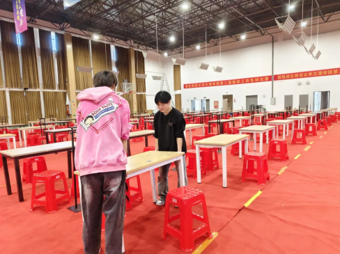 同时,理工学部学生党员们以责任感和奉献精神展现了共产党员的先锋本色。3月26日,理工学部学生党支部的志愿者们早早到达现场,投入紧张的准备工作。他们打扫会场、布置展位、摆放企业展板,确保招聘会前期的各项准备工作有序进行。3月27日招聘会结束后,学生党支部的志愿者们积极打扫卫生,撤去企业展板、桌椅地毯等,将风雨操场恢复原貌,供广大爱好运动的文理学子们继续使用。