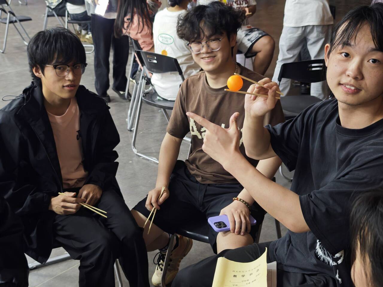 活动开始破冰游戏迅速点燃现场氛围,同学们在欢声笑语中打破陌生感。随后的“筷子球”环节,老师们也加入挑战,与同学们默契配合,展现了亦师亦友的亲密互动。“气球保卫战”和“抢凳子”游戏更是将气氛推向高潮,大家在竞技中学会协作,在欢笑中释放压力。“拍卖会”环节别出心裁,同学们通过虚拟竞拍分享自己的价值观和人生目标,而“听歌识曲”则让音乐成为情感的纽带,引发共鸣。活动现场气氛热烈欢快,同学们在轻松有趣的游戏中逐渐卸下压力,整个音乐厅充满了活力与温暖,活动氛围融洽,大家在欢声笑语中真正实现了放松身心、愉悦交流。