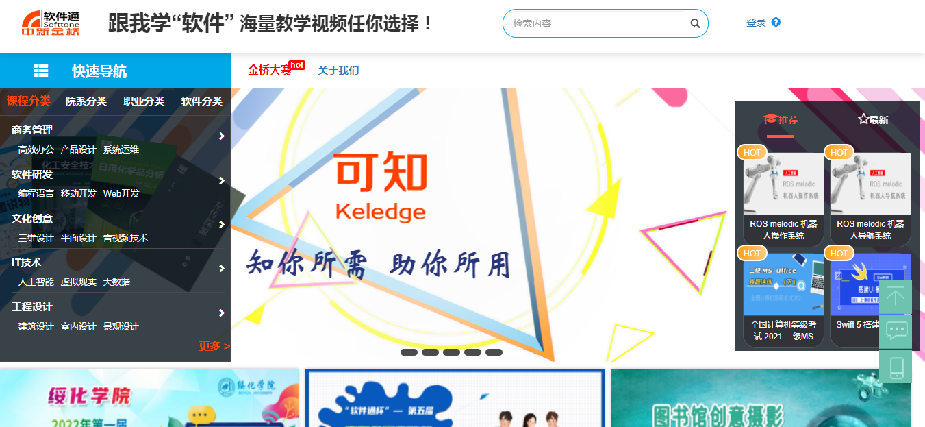 所有视频均由专业人员全程讲解,使平淡枯燥的软件学习形象具体,富有吸引力。软件通还具备自建资源的上传功能,促进学习资源共建、共享。