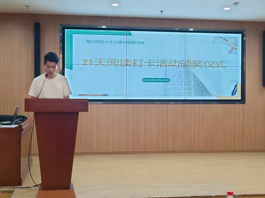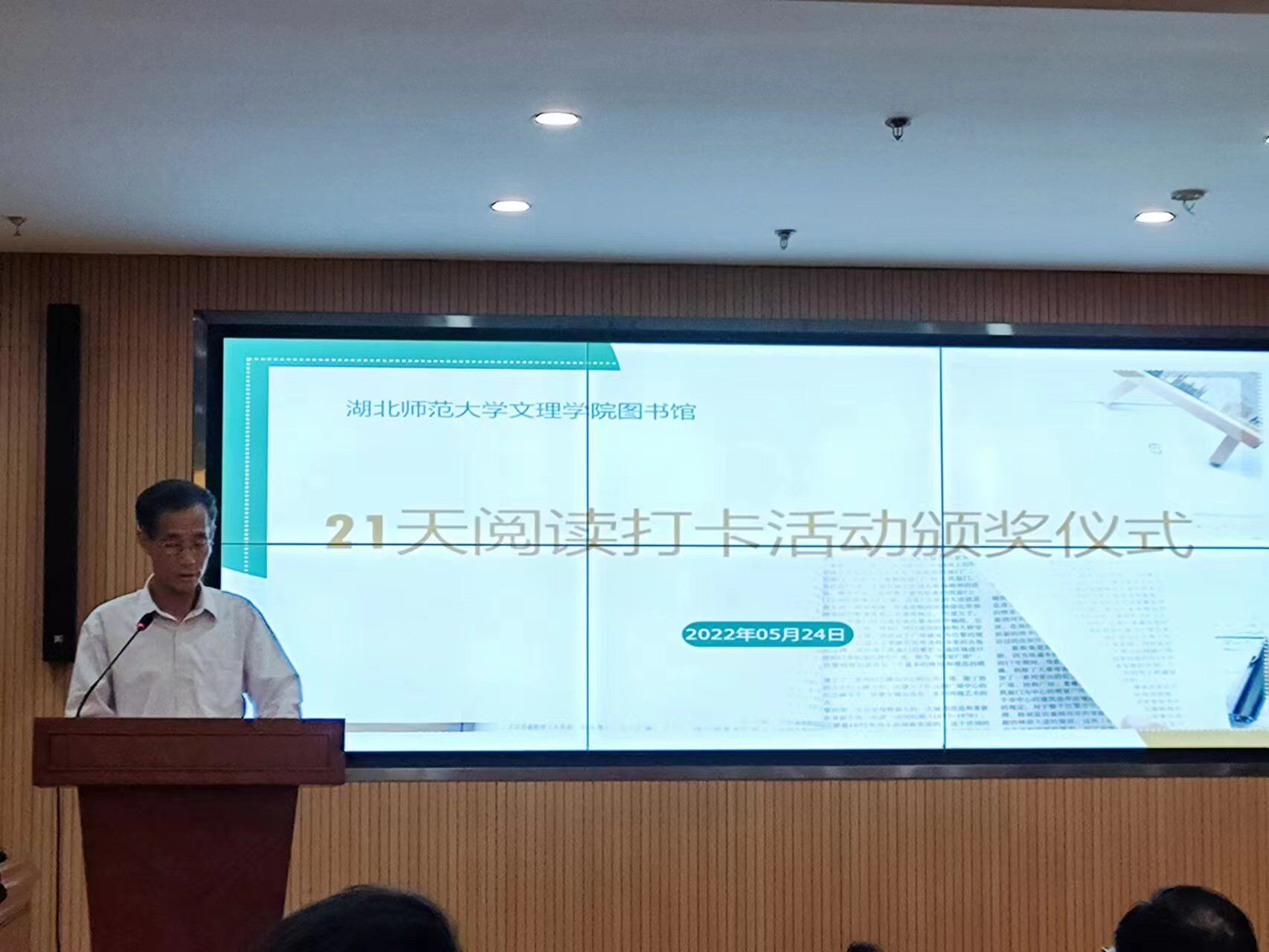 为表彰先进、鼓励阅读,图书馆于524日下午在报告厅举办了“21天阅读打卡活动”颁奖仪式,校党委副书记杨之毛、学工部部长汪崇文、人文学部主任熊子延、图书馆馆长郑荣臻参加此次颁奖仪式。