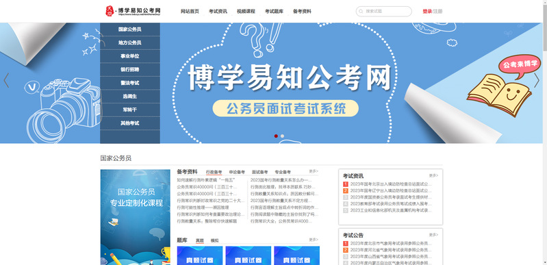 公务员考试:国家公务员、地方公务员、事业单位招录、警察招考、银行系统招聘、村官、政法干警招录等考试。