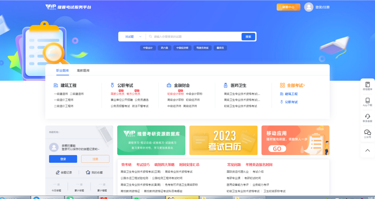 《维普考试服务平台》是集职业题库、高教题库双题库于一体,包含海量试题试卷资源,并提供精品题库复习训练、试题试卷浏览查询、行业考试资讯动态的考试应用服务型产品。