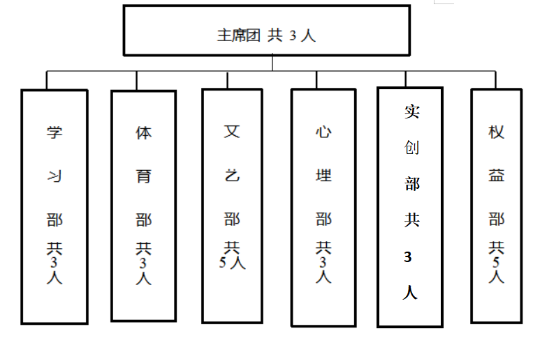 校级学生会组织主席团成员不超过5人。 | □达标 √ □未达标 | 实有3人 | |