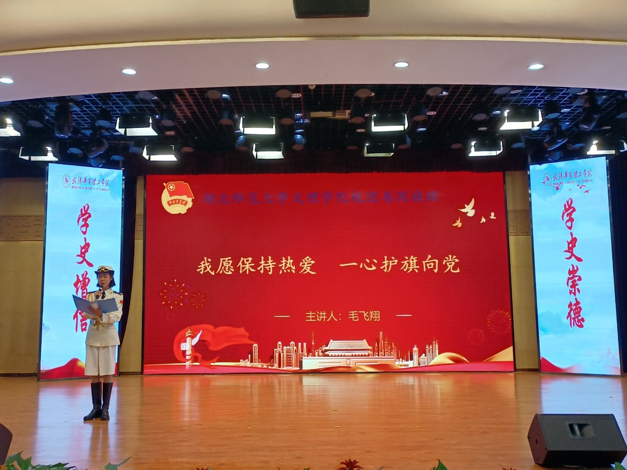 球友会中国有限公司2019级国旗班团支部主讲人毛飞翔,以班训”忠诚正义、爱国荣校“为依托,结合支部特色与亮点,充分展示了支部组织建设、思想建设、活动开展、社会实践等众多方面成果,风采展示环节中笔直的身影、飒爽的军姿与坚定的步伐尽展新时代青年风采,“请党放心、强国有我!”,呐喊响彻大厅,用铮铮誓言响应先辈们的号召。