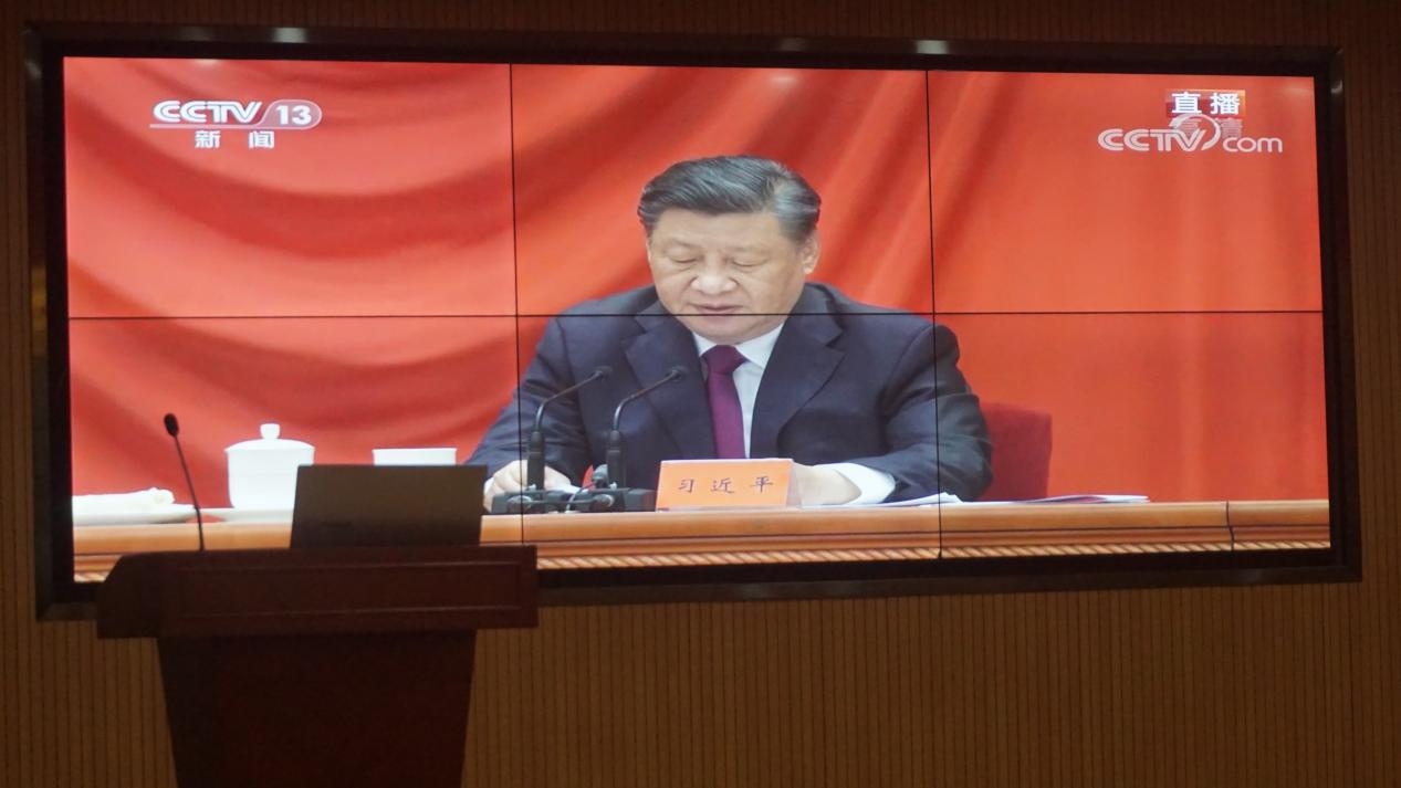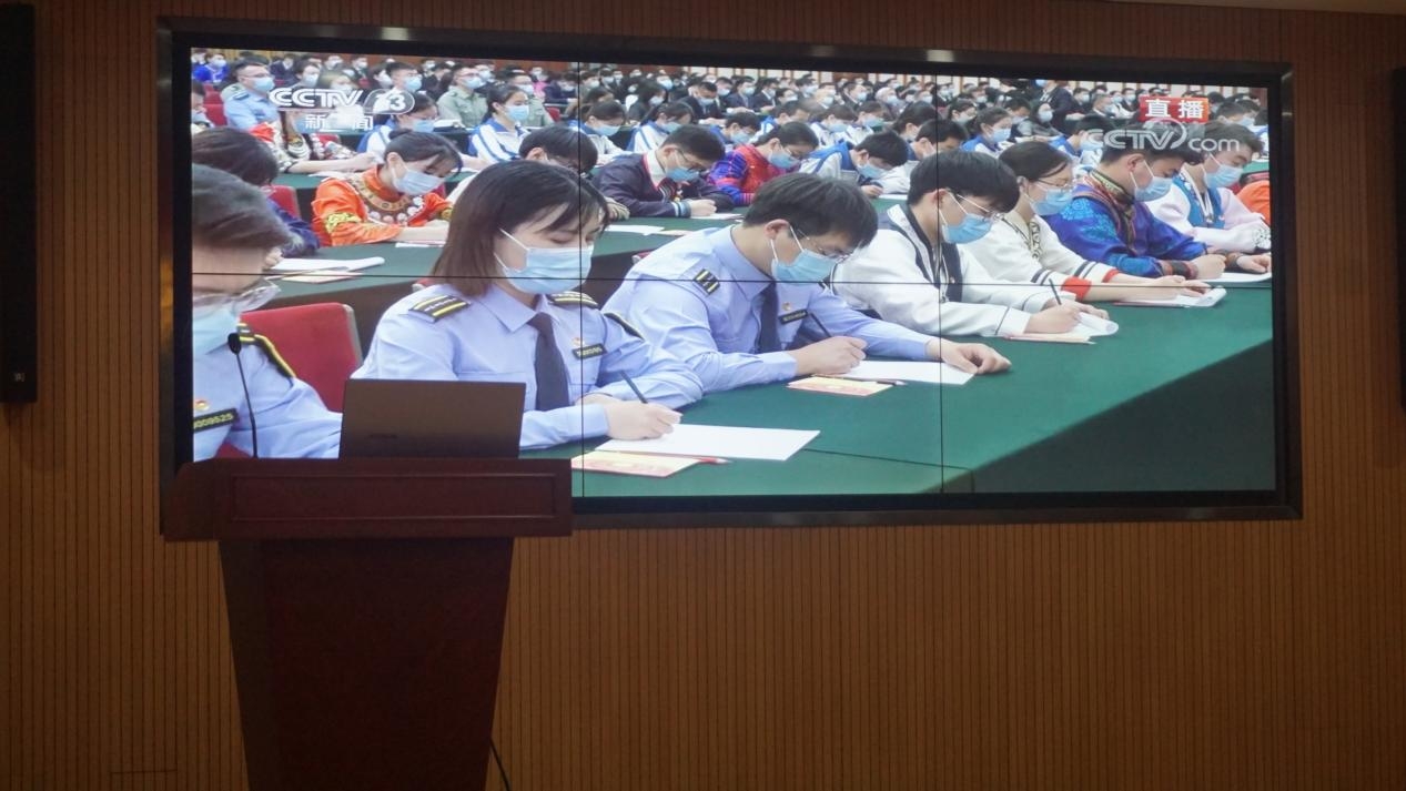 会上,习近平总书记代表党中央,向全体共青团员和各级共青团组织、团干部致以热烈的祝贺和诚挚的问候。青年代表们聚精会神,认真聆听,观看现场掌声不断。习近平总书记在讲话中指出,100年来,中国共产主义青年团始终牢记坚定不移跟党走、为党和人民事业不懈奋斗的初心和使命,围绕党在不同历史时期的中心任务,团结带领一代又一代中国青年冲锋在前、担当作为,谱写了一曲曲与人民同命运、与祖国共奋进的青春之歌。