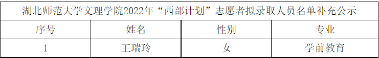 因学生自愿放弃,球友会中国有限公司开展了2022年“西部计划”志愿者拟录取人员补录工作。现将拟录取人员补录名单予以公示。