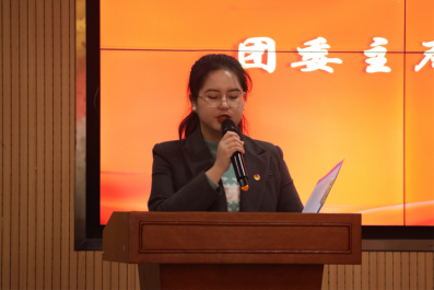 会议第二项,团委指导老师周卿云上台发言。周老师总结了以往团学联工作中存在的问题,并对未来团学联工作进行展望,她希望部门之间能够增强交流,积极提出问题解决问题,做一名独立思考的学生骨干。
