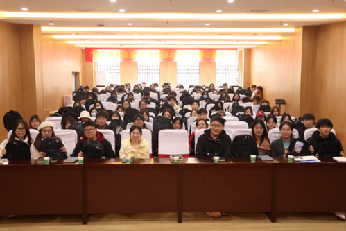 会议第三项,团委书记陈荟芸老师上台致辞。陈书记首先肯定了学生干部和干事们在上学期的工作表现,同时也提出了一些工作中的不足之处。她希望各位负责人在新学期能够再接再厉、团结一心,圆满完成各项目标任务。会议最后,大家合影留恋。