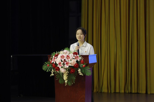 新团员代表曾维方和优秀团员代表张琬琪分别上台发言。曾维方以饱满的热情和坚定的信念表达了对共青团的热爱和对未来的憧憬,她表示将在各方面要求自己,不断学习进步,积极参与团组织的各项活动,为团组织增添光彩。随后,张琬琪分享了自己过去的经验与深刻感悟,强调始终坚信共产主义信仰,不忘初心,牢记使命,向我们展示了作为共青团团员的责任与担当。
