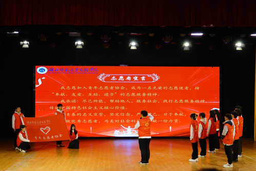 随后,青年志愿标兵带领全体志愿者进行宣誓,志愿加入青年志愿者协会,始终持“奉献、友爱、互助、进步”的志愿服务精神,坚定了全体志愿者的志愿服务信念。