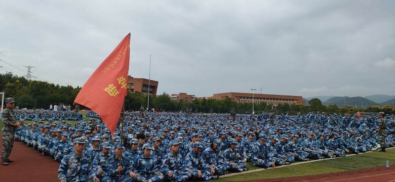 秋季燥热的风拂过肆意的原野,闷热的热浪一波接一波愈发激烈,青年们挺拔的身影在灰蒙蒙天空的映衬下,洋溢着着青春的朝气和新鲜的热血。人文学部七百多名冉冉升起的新星身着迷彩服,身姿挺立端庄,像蓬勃生机的青松札根在红白相间的塑胶跑道,怀揣着对未来生活的希冀,用坚定的意志凝成锐利的长剑劈开眼前的迷雾,无所畏惧,勇往直前。齐步、踏步、下蹲、敬礼、停止间转法……一次次练习,一次次纠错,靠脚声趋向一致,青年意气风发。“一二三四,一二三四”,铿锵的口号在空旷的操场一遍遍回响,从额角慢慢汇聚的汗珠,青年们通红的脸颊,千百次定点的挥臂,遒劲有力的步伐,军训生活让温室里的花朵逐渐脱去了稚气的模样。生于红旗之下,军人血液深入骨髓之中。少年人理应承袭先辈之荣光,无论道阻且长,我心自铿锵。