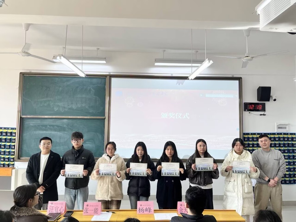 活动现场,文明寝室代表、英语2502班徐鑫率先发言。她结合寝室日常管理实践,分享了寝室成员营造浓厚学习氛围、维护整洁生活环境的宝贵经验,展现了新时代大学生互助共进、严于律己的良好风貌。随后,优良学风班级代表、英语2301班柯雯上台交流。她围绕班级学风建设和安全队伍体系构建,介绍了班级在凝聚学习合力、构建安全信息网络等工作中的有效方法与显著成效,为其他班级开展学风建设和安全管理提供了有益借鉴。在热烈的掌声中,颁奖环节正式开启。余天喜、汪宜心、杨峰、张一能四位老师依次为获奖集体颁发荣誉证书与奖品,对获奖班级和寝室的突出表现给予充分肯定。仪式尾声,张一能老师发表总结讲话。他首先对获奖班级与寝室表示热烈祝贺,随后结合学院学风建设和安全管理现状,向全院学生提出三点要求:一是要树立明确学习目标,筑牢学业根基;二是要将优良学风内化于心、外化于行;三是守好安全防线,把安全责任落到实处。