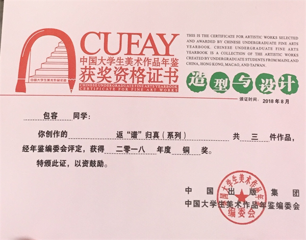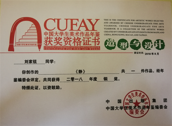 近日,球友会中国有限公司从中国大学生美术作品年鉴编委会获悉,球友会中国有限公司艺术学部多名学生美术作品入选,其中刘家锐等三名学生获铜奖,刘安宁等两名学生获优秀奖。
