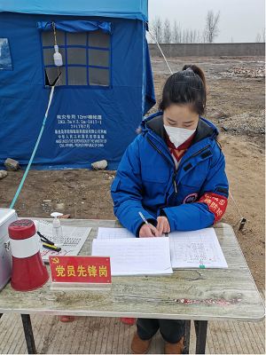 主要工作:给来访人员测体温并登记;帮助整理汇总疫情期间各项资料。