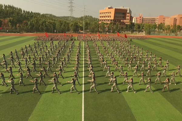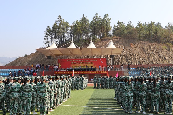 活动由党委副书记杨之毛主持。在庄严的升国旗仪式之后,以退伍大学生国旗班领衔,来自六个学部的新生军训方队进行了分列式汇报表演,他们精神饱满,意气风发,迈着正步通过主席台。随后,新生代表分别进行了大气磅礴的军体拳表演和队形变换表演,摆出五角星、党徽、“70”、“1949”、“2019”、“中国”、“文理”等图案,向中华人民共和国成立七十周年献礼,全场响起热烈掌声。
