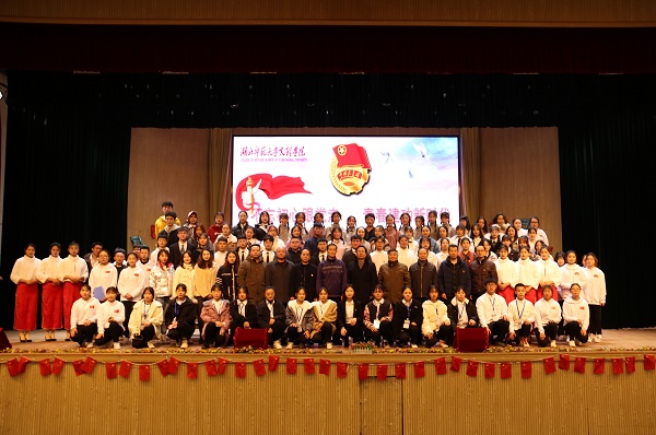活动在庄严的《国歌》中拉开帷幕,老团员代表为新晋团员佩戴团徽,新老团员面对鲜艳的团旗庄严宣誓。优秀学生代表王利杭发表感言,号召大家要铭记历史,奋勇前进,用拼搏点亮青春,将“一二·九”精神薪火相传。来自六个学部的近百名学生分别通过诗歌、朗诵、演讲、舞蹈等节目缅怀英雄,激励文理学子不忘初心,砥砺前行。