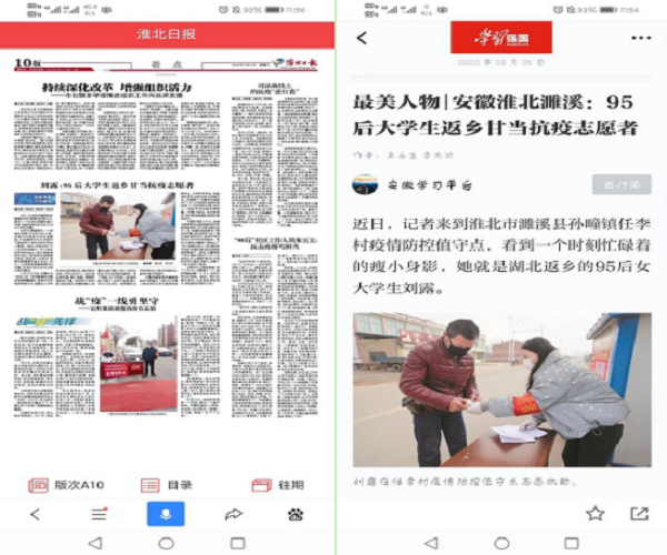 日前,球友会中国有限公司经管学部学生、预备党员刘露在家乡安徽省濉溪县参加疫情防控工作事迹被“学习强国”平台、腾讯大楚网、《淮北日报》、淮北文明网等多家媒体报道。