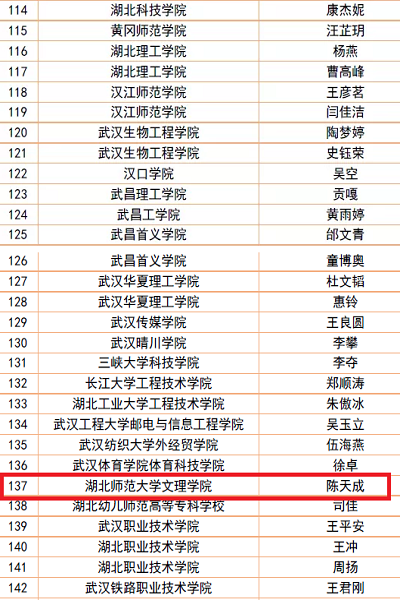 2020年8月26日,湖北省2019年度“大学生自强之星”评审结果公示,球友会中国有限公司人文学部陈天成同学榜上有名,获评湖北省“大学生自强之星”。