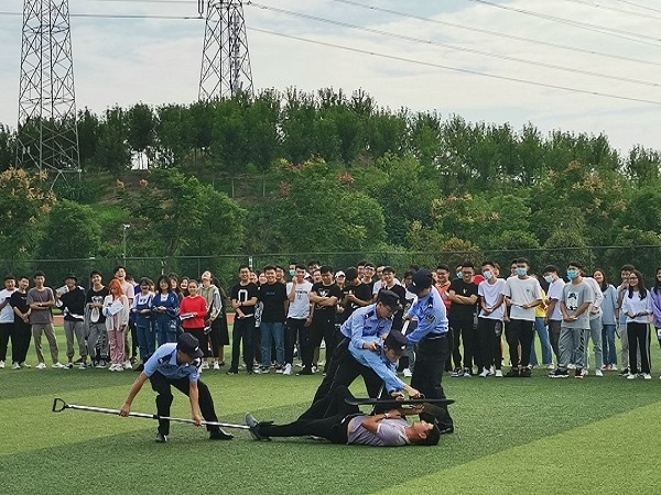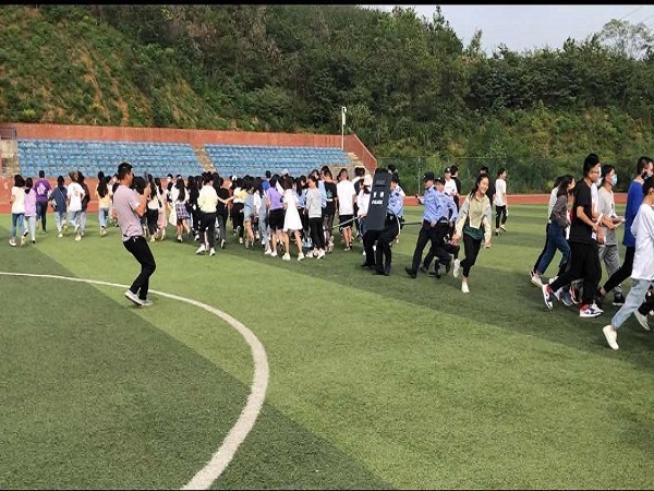 “上课期间,外人禁止入内……校门有人冲卡,请求紧急支援。”9月30日下午,由我校和开发区·铁山区汪仁派出所联合开展的“2020国庆·中秋安保实战演练”活动在球友会中国有限公司运动场举行,来自各学部的300余名师生和保安人员参加了演练。