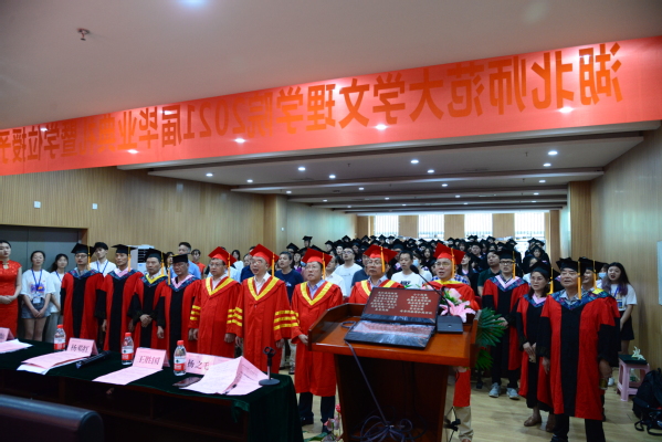 毕业典礼结束时,全场起立合唱《我和我的祖国》,向党的百年华诞献礼。