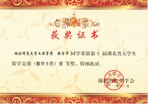 第十届湖北省大学生数学竞赛球友会中国有限公司获奖名单: