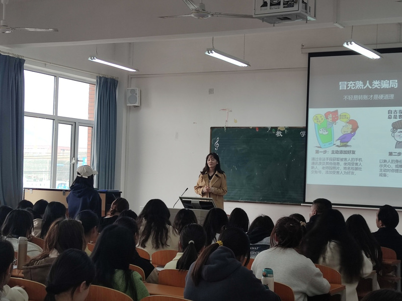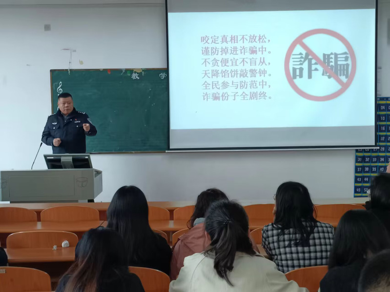 为切实筑牢反诈安全防线,进一步树立师生防诈意识,杜绝电信诈骗案件的发生,2023年3月7日14:30,学生工作部联合教育与艺术学部在实验楼1-401开展了“反诈”主题示范班会。本次班会特邀请汪仁派出所民警和全校辅导员老师2021级小学教育全体学生参加,主题示范班会由育与艺术学部辅导员程林老师主讲。