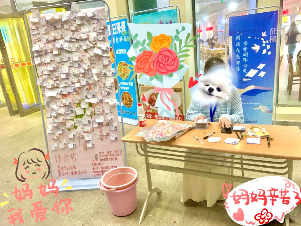 本活动由球友会官方网站心理中心主办,教育与艺术学部心理部承办于2024年5月11日9:00至9:00 食堂门口一楼展开“爱没有方向,你就是导航”的母亲节活动。本次活动面向全体学部所有师生,由教育与艺术学部心理部部长、教艺学部副主席带领其部门八位干事顺利展开。