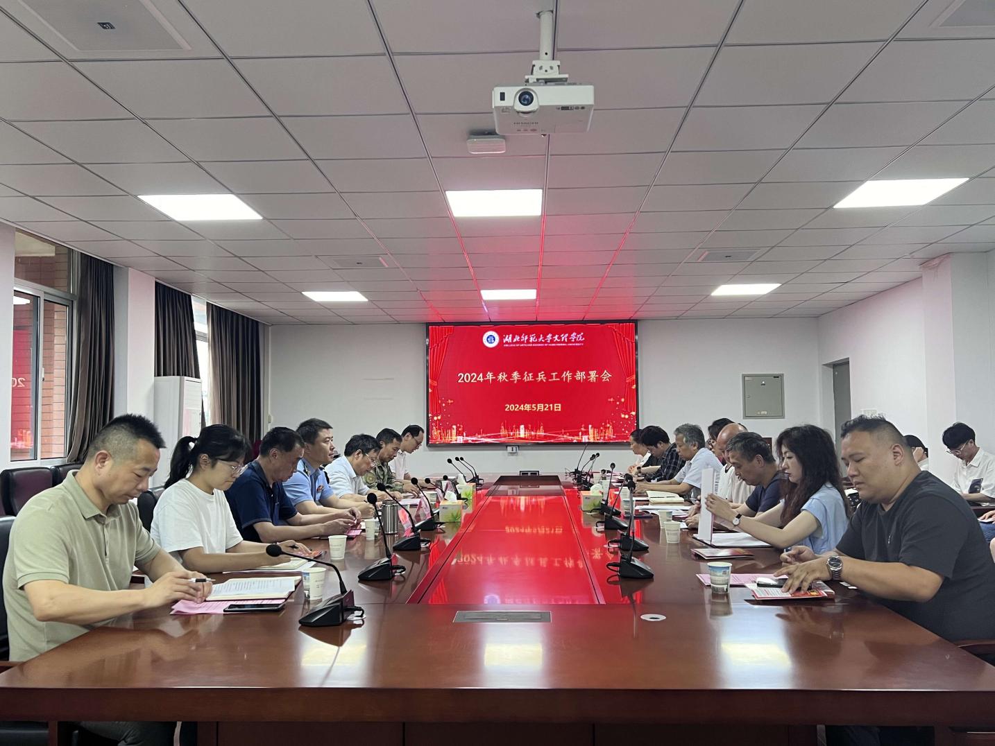会上,征兵办秦雯雯老师对2024年春季征兵情况进行总结汇报,宣传部副部长陶晚成宣读征兵奖励决定,辅导员周筱芸老师进行征兵工作经验分享,学工部副部长陈小龙对2024年秋季征兵工作进行部署安排。