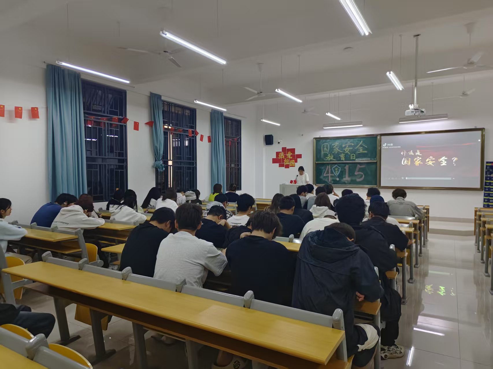 团日活动方面,全体学生集中观看了国家安全主题宣传片《守护》,通过震撼案例直观感受国家安全面临的复杂形势。学生干部结合《新时代爱国主义教育实施纲要》,系统解读了政治安全、科技安全、网络安全等领域的青年责任,特别强调在社交媒体时代,青少年要警惕“无心之失”成为国家安全的突破口。