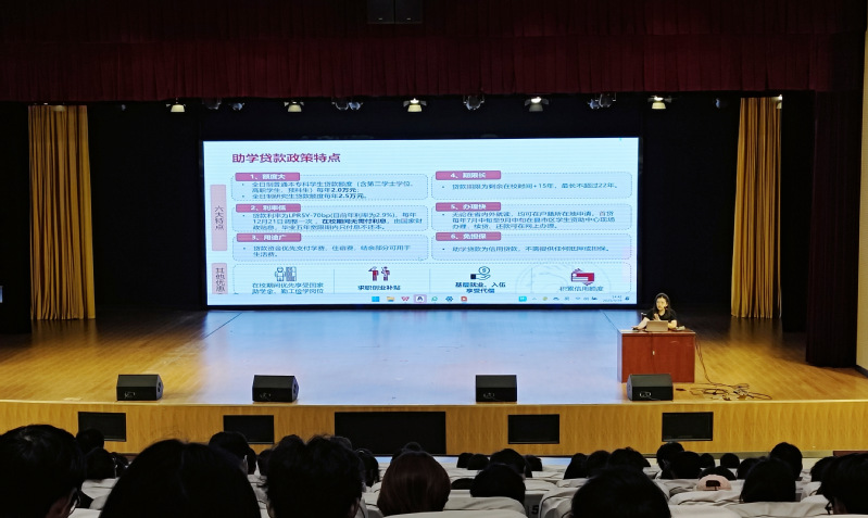 宣讲环节中,学生资助管理中心教师张艳艳围绕生源地信用助学贷款全流程展开系统讲解。从“申请条件与操作步骤”“到校后手续办理注意事项”“毕业前关键流程”,到“还款方式与征信重要性”,她结合典型案例逐一解析政策要点,并针对学生普遍关心的贷款额度、还款期限、逾期影响等问题进行现场答疑。其讲解内容详实、逻辑清晰,现场互动氛围热烈。