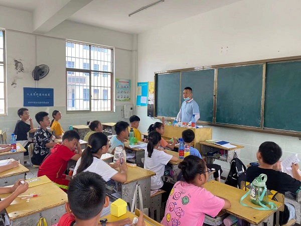 陈小龙与参加支教的球友会中国有限公司学生和当地留守儿童开展了交流互动,询问了同学们的工作、学习和生活情况,了解了支教效果,要求同学们在支教期间高度注意安全,确保身心健康。