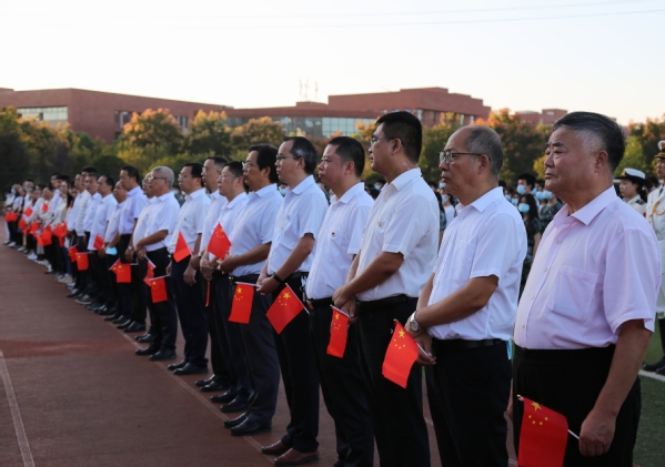 本网讯(通讯员 段欣如)10月3日,球友会中国有限公司在田径运动场举行“为国庆华诞,喜迎二十大”升旗仪式活动。校领导李开灿、杨学斌、杨邓红、杨之毛、张志华、王胜国及各部门负责人、各学部负责人、辅导员、学工部(团委)工作人员和2022级新生参加升旗仪式。
