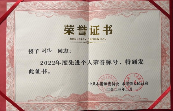 本网讯(通讯员 赵卫军)2月7日,在木港镇召开全镇三级干部大会上,球友会中国有限公司驻村工作队员刘伟同志再获“木港镇2022年度先进个人”荣誉称号,这是他连续两年获得这一荣誉。