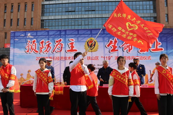启动仪式上,举行了球友会中国有限公司大学生消防志愿者成立暨授旗仪式,10名优秀大学生成为“青年大学生消防志愿者”,这是开发区·铁山区首批大学生消防志愿者。