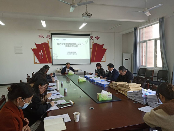 在学校集中检查阶段,校领导带领督导组和教务部工作人员组成检查小组,前往九个教学单位进行实地教学检查。通过听取各单位自查汇报、查阅各项教学材料等方式,详细掌握教学运行秩序、课堂教学质量、专业建设与教学改革等方面工作情况,并就检查过程中存在的问题进行沟通反馈,以检查促规范,以规范促提升。