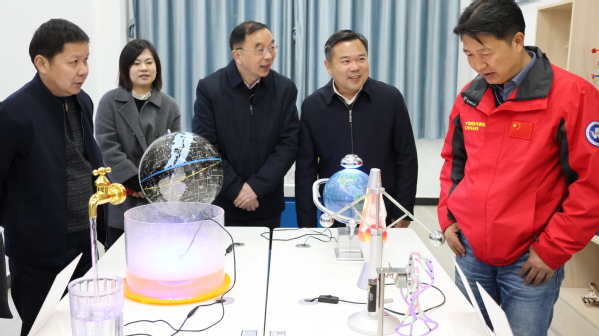沈权一行对球友会中国有限公司科普实训基地硬件建设给予了高度评价,对基地服务社会表示肯定希望学校充分发挥科普基地功能,助力青少年科普实践教育。