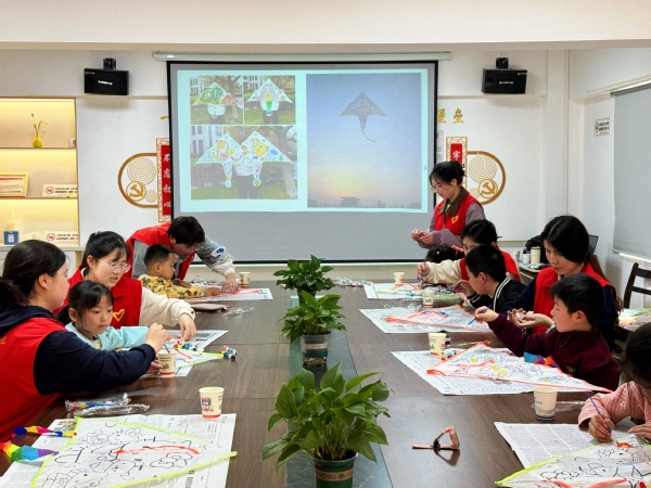 文化讲堂,志愿者通过精心制作的多媒体课件,以生动有趣的方式向孩子们系统讲解了中国风筝两千多年的发展历史。课件详细展示了从春秋时期鲁班制木鸢以窥宋城的传说,到唐宋时期风筝技艺的成熟,再到明清时期风筝文化的繁荣,让孩子们在历史长河中感受这项非遗技艺的独特魅力。志愿者还特别介绍了传统风筝扎制技艺中的扎、糊、绘、放四艺,以及南北风筝的不同艺术特色。