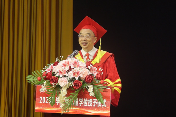 穗转冠正,逐光前行部分学生代表向母校汇报行程,表达了对母校的感谢和未来的憧憬。杨邓红为2025届毕业生们送上深情的寄语和美好的祝福。学位评定委员会委员为2025届毕业生代表完成拨穗仪式,并授予学位证书。