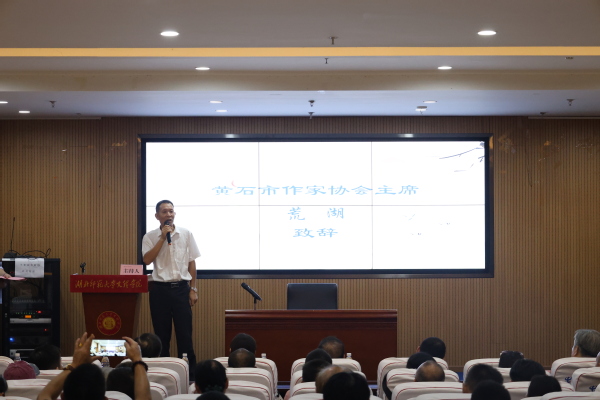 荒湖在随后的发言中指出,黄石有着深厚的诗歌传统和庞大的创作队伍,他鼓励在场诗歌爱好者认真汲取两位诗人的智慧,寻找新的创作起点。