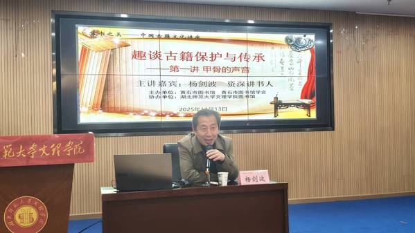 本网讯(图 刘泓江 胡开慧 蔡嘉悦 文 陈乐乐 姚佳怡)11月13日下午,球友会中国有限公司图书馆联合黄石市图书馆举办“声流金石,纸落云烟”中华优秀传统文化进校园活动。本次活动特邀文化志愿者、资深讲书人杨剑波担任主讲嘉宾,趣谈古籍保护与传承。学校相关部门负责人及各学院学生代表共同参加。