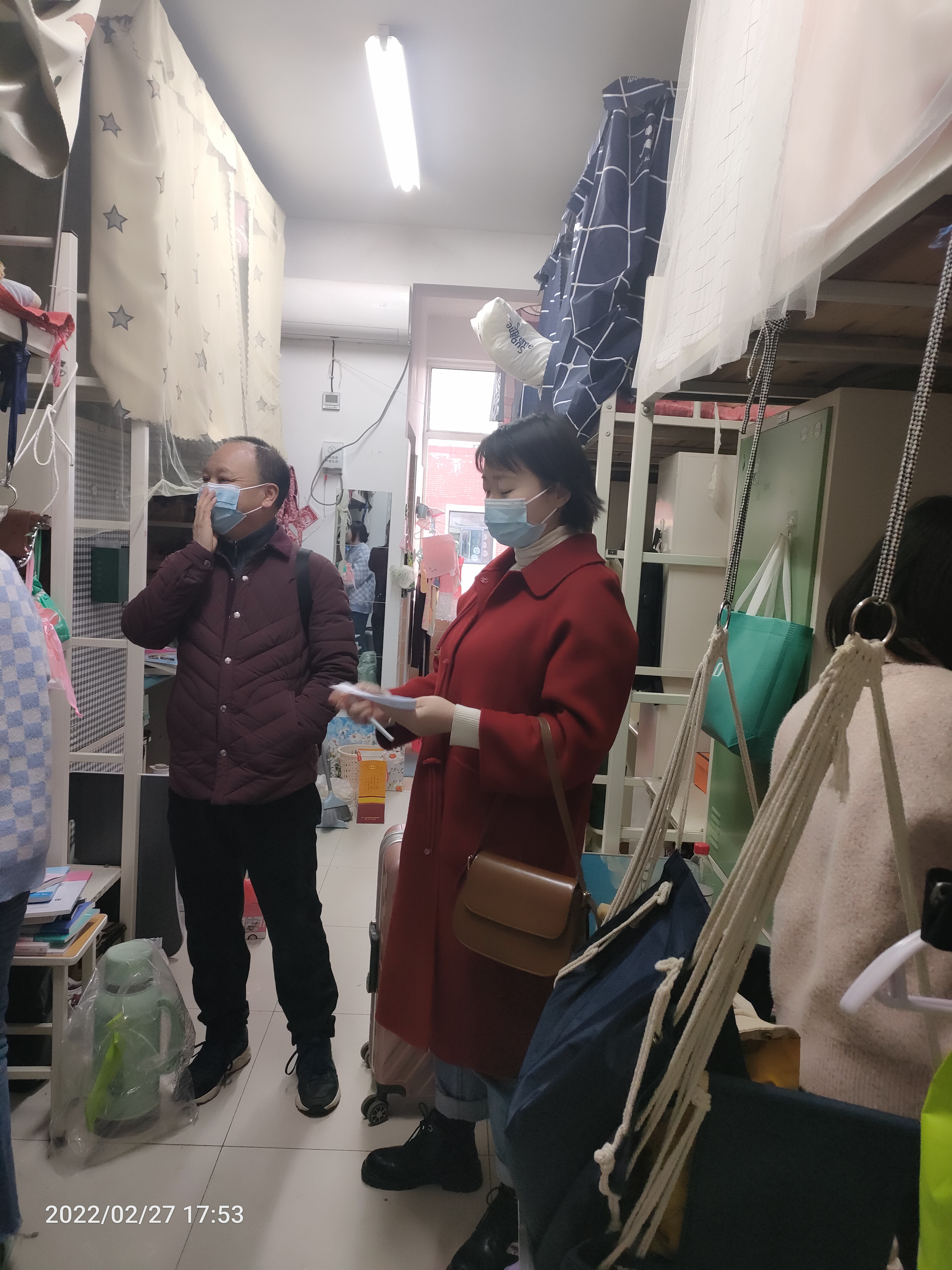 开学伊始,根据文理学院2022年春季开学暨疫情常态化防控工作要求,消除安全隐患, 2022227日下午530,教艺学部主任王文、总支书记李先华、学工部副部长陈小龙,以及全体教艺学部辅导员赴学生寝室探望学生。