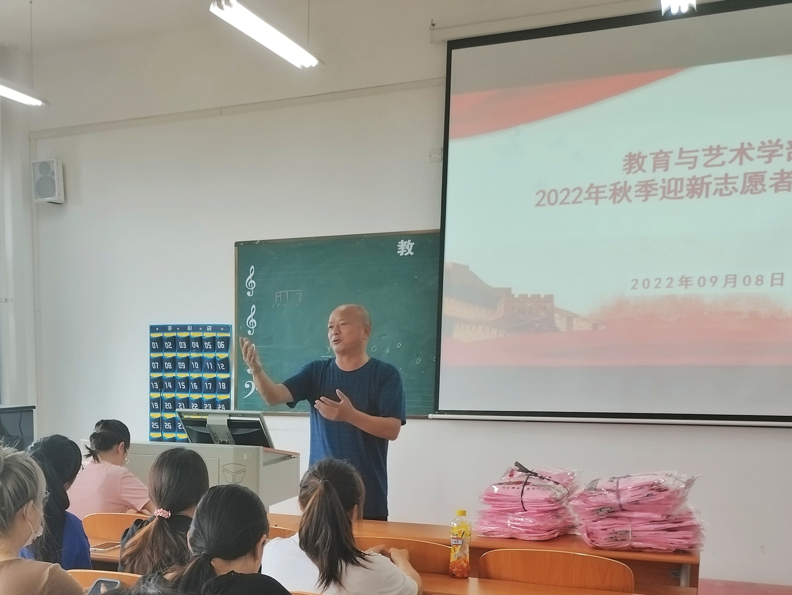 为了全面有效落实疫情防控常态化下迎新工作,确保新生报道安全、高效、有序;按照学校各项规定,更好的迎接2022级新生,教育与艺术学部在2022年9月8日中午12:00在实验楼1-403组织召开迎新动员大会,参与此次会议的有全体辅导员、60余名志愿者及班主任助理,动员大会由李先华书记主持。