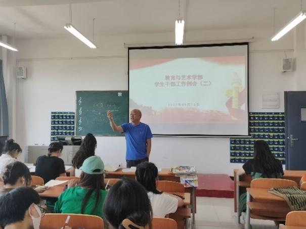 2022916日中午12:00,按惯例学部在实验楼1-403教室组织召开学生干部例会,参会人员有辅导员,团学会干部,各专业班级负责人。会议由总支书记李先华主持。工作纪要如下: