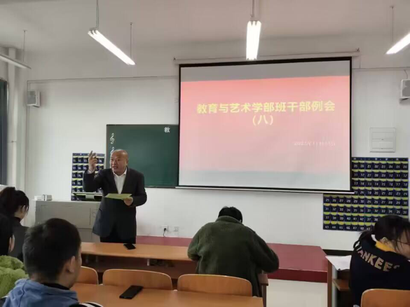 2023年11月13日12:00,在实验楼1-403教室组织召开学生干部工作例会。全体辅导员、团学会干部及各专业负责人与会。例会由总支书记李先华主持。