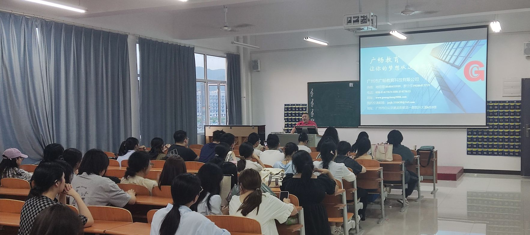 广畅教育集团褚经理、罗老师分别详细介绍了公司概况、招聘岗位、安置单位、招聘流程、实习时间安排、工作安排、就业安排等信息,同时对同学们关心的工作待遇和未来的发展前景进行了详细讲解。现场同学认真聆听并做好记录,积极询问、添加微信。讲座在融洽、热闹的氛围中圆满结束。