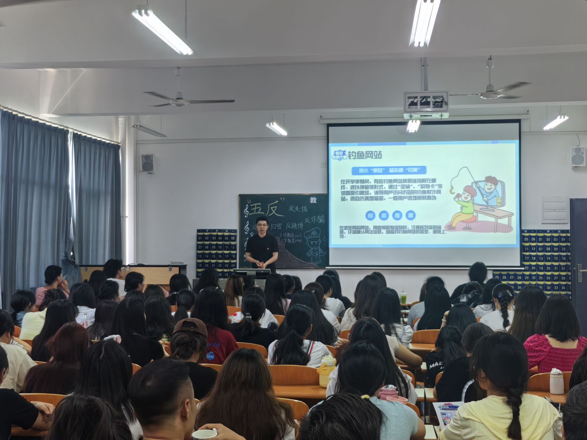为进一步增强学生的安全防范能力,保障学生生命财产安全,使反诈骗、反失信、反酗酒、反赌博、反夜不归宿及防溺水等安全意识深入人心,按学生工作部的工作安排,5月24日下午2:30,23级小学教育专业组织开展题为“筑起‘五反一防’高墙,共保平安和谐校园”主题示范班会。