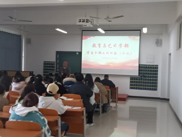 2024年12月6日中午12:00,在实验楼1-403多媒体教室组织召开学生干部工作例会。全体辅导员、团学会干部及各专业班级负责人与会。例会由总支书记李先华主持。