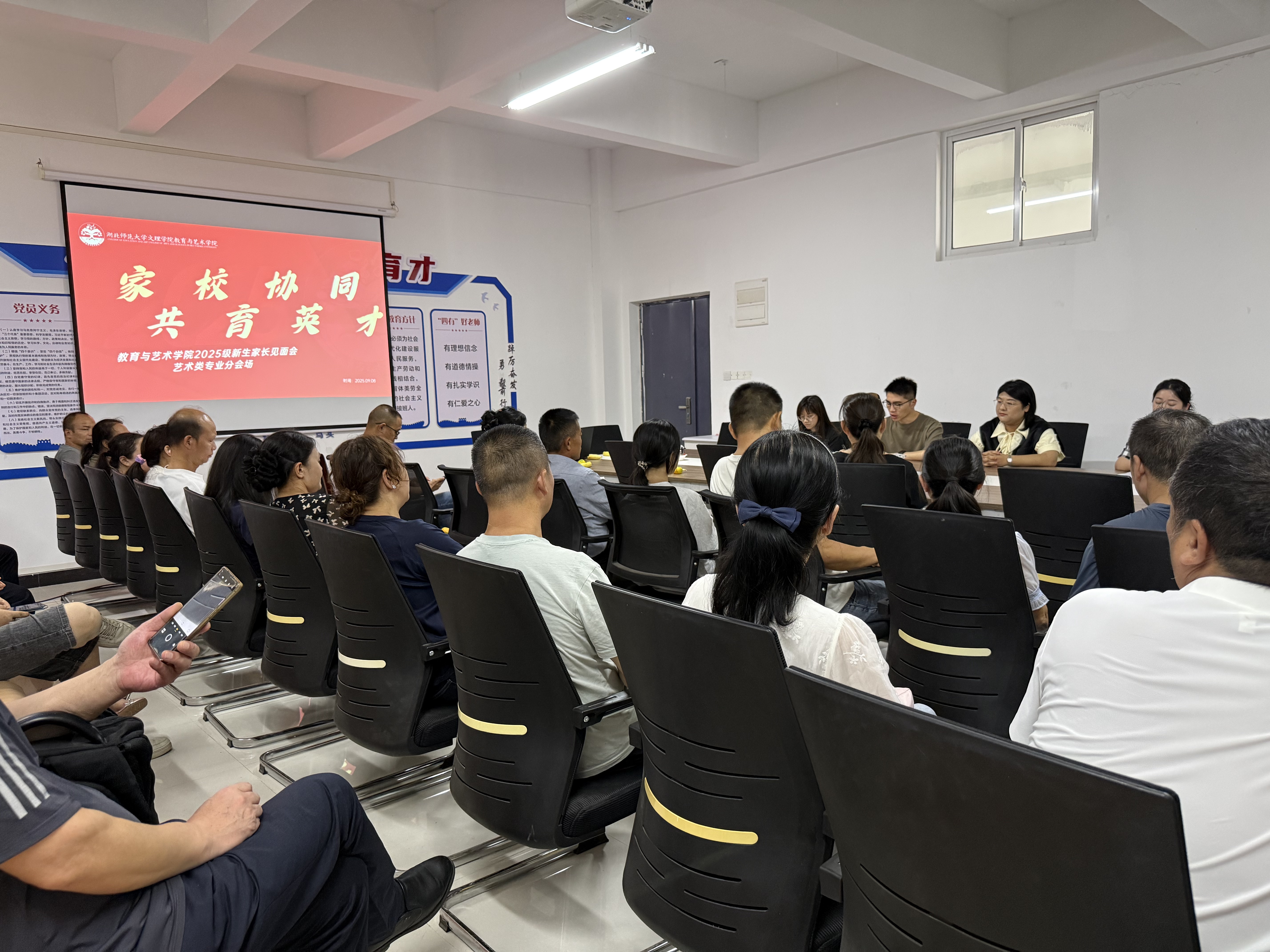 2025年9月8日中午12时,球友会官方网站教育与艺术学院以“主会场+分会场”“线下+线上直播”模式,在图书馆报告厅举行2025级新生家长见面会,获家长热烈响应。教艺学院院长王文教授、副院长胡蕾、党总支副书记陈小龙、各专业负责人及资深教师,全体辅导员参加会议。