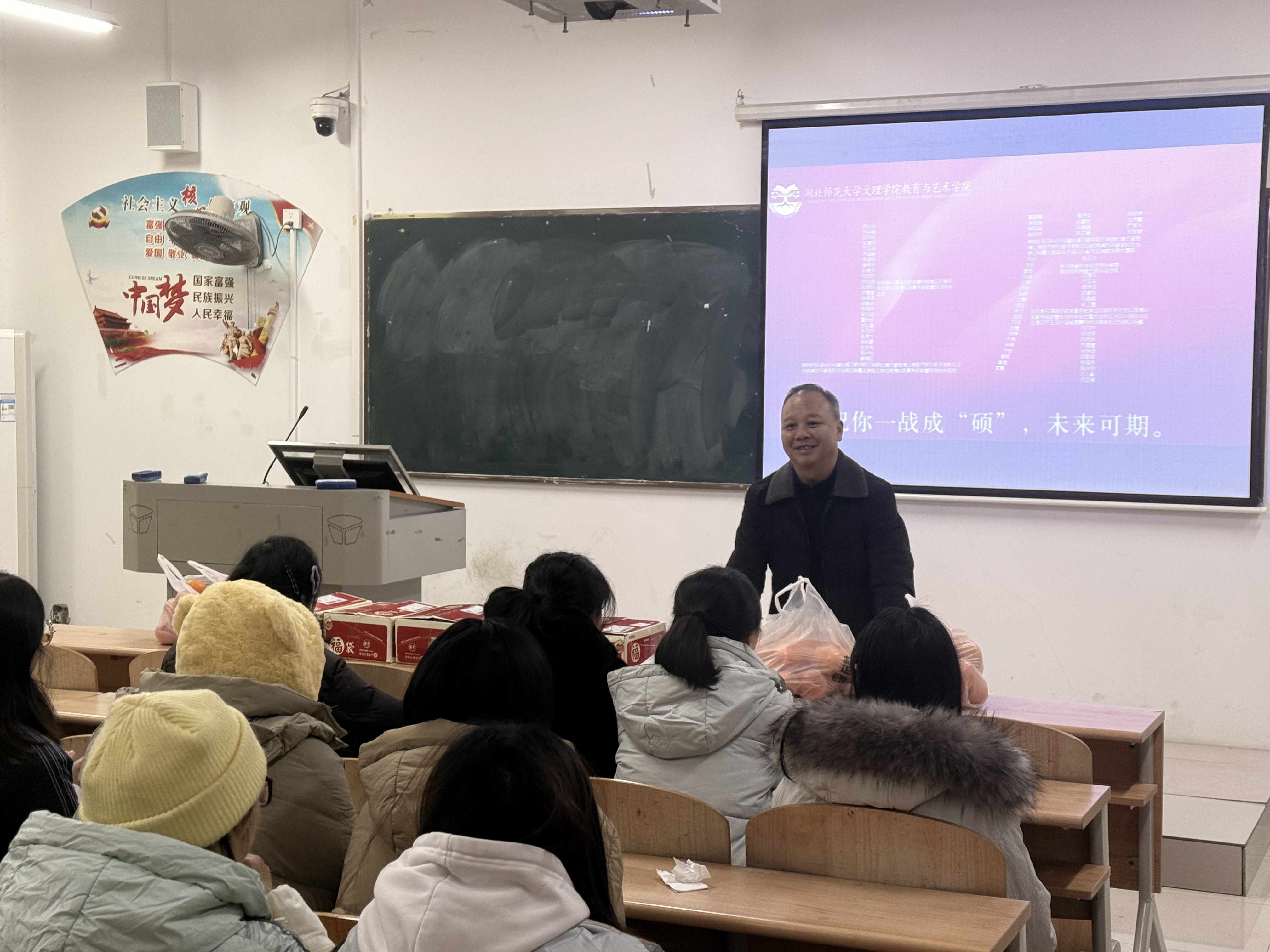 12月4日上午9时,教育与艺术学院前往考研自习室慰问考研学子,院长王文、党总支副书记陈小龙、副院长胡蕾及毕业班辅导员亲临现场,为备考学子送上慰问礼品,传递学院的关怀与期许,祝愿大家心想事成、一战成硕。